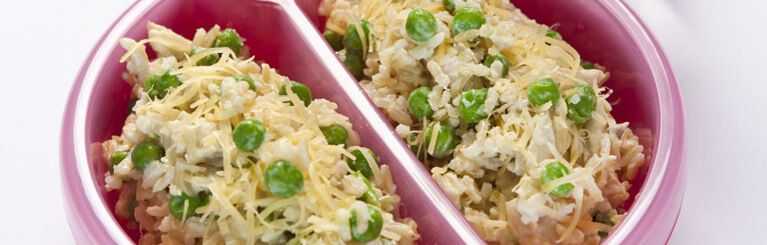 Risotto de pollo y arvejas Cantidad de porciones: 6 Tiempo de cocción: 12´ – 12´ Tiempo de preparación: 12´ – 12´ Ingredientes: 450 gr de arroz integral de grano corto 210 gr de arvejas 1.125 lt de caldo de pollo 1 cebolla blanca 40 gr de manteca pimienta negra a gusto (opcional) 300 gr de[…]