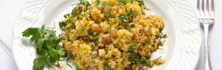 Arroz con garbanzos y azafrán Cantidad de porciones: 6 Tiempo de cocción: 12´- 12´ Tiempo de preparación: 15´ Ingredientes: 2 cucharadas de aceite de canola 2 dientes de ajo 450 gr de arroz basmati integral 1 pizca de azafrán 1.2 lit. de caldo de pollo o agua 1 pizca de azafrán 2 cucharadas de cilantro 2[…]