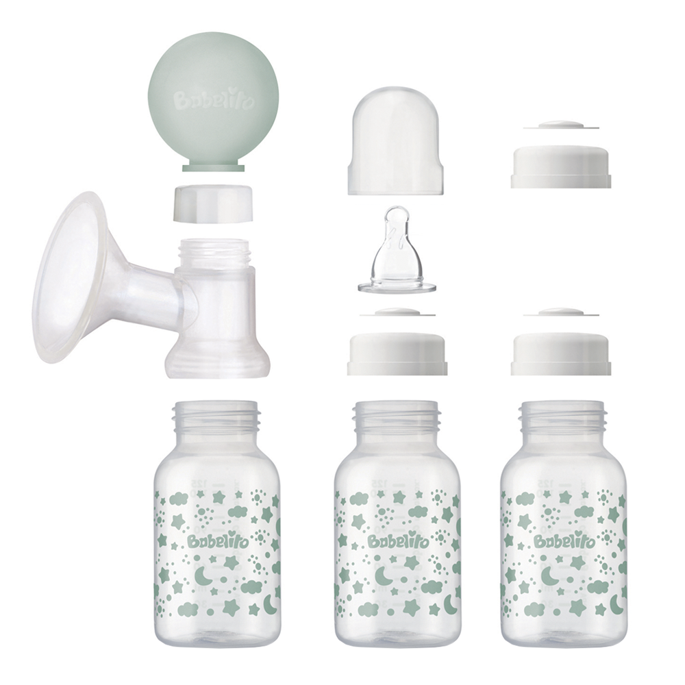 Breast Pump: Our manual extractor is the perfect complement to help your baby always be able to drink breast milk, continuing the benefits of breastfeeding safely and naturally. The extraction effect mimics the baby’s sucking. It is easy to assemble. Its plastic parts can be sterilised (except for the rubber bulb). Includes a cap, teat and ring set so you can also use it as a bottle.