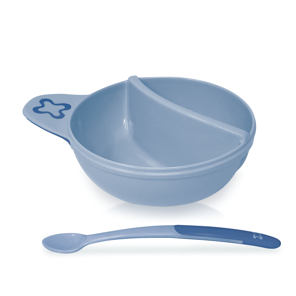 The ergonomic design of bowl and its anti-slip grip allows you to hold it safely in one hand while you feed the baby with the other one. The elongated design of the spoon allows you to use it in deep bowls or glass food containers.