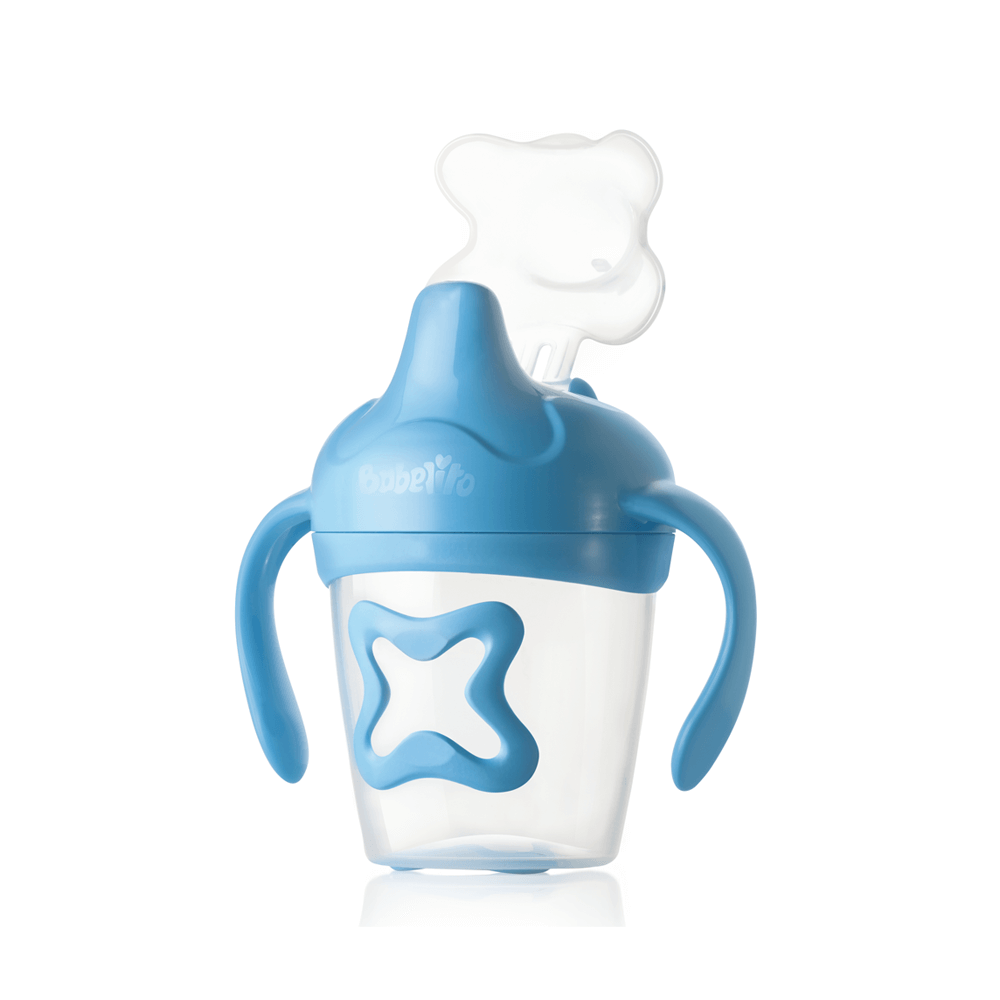 Non-spill cup helps your baby in the process of learning to drink alone. With handles and protective lid. It has a capacity of 250ml.