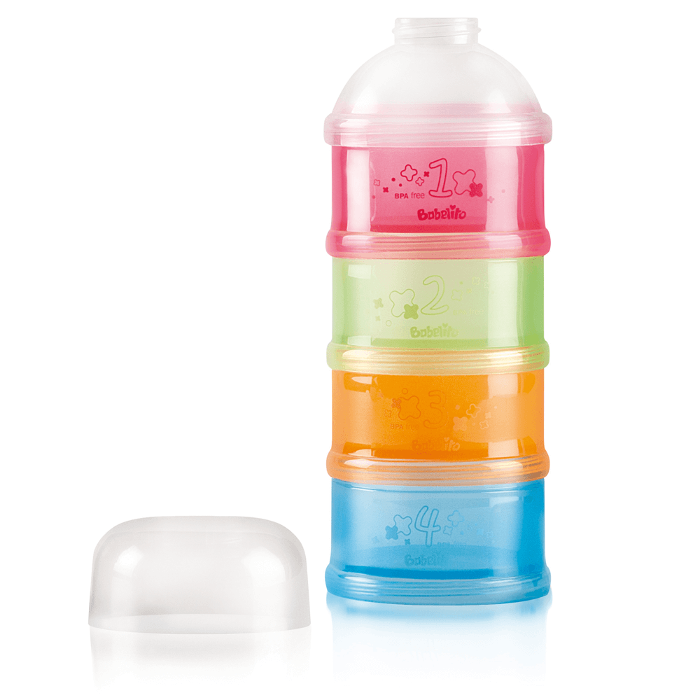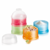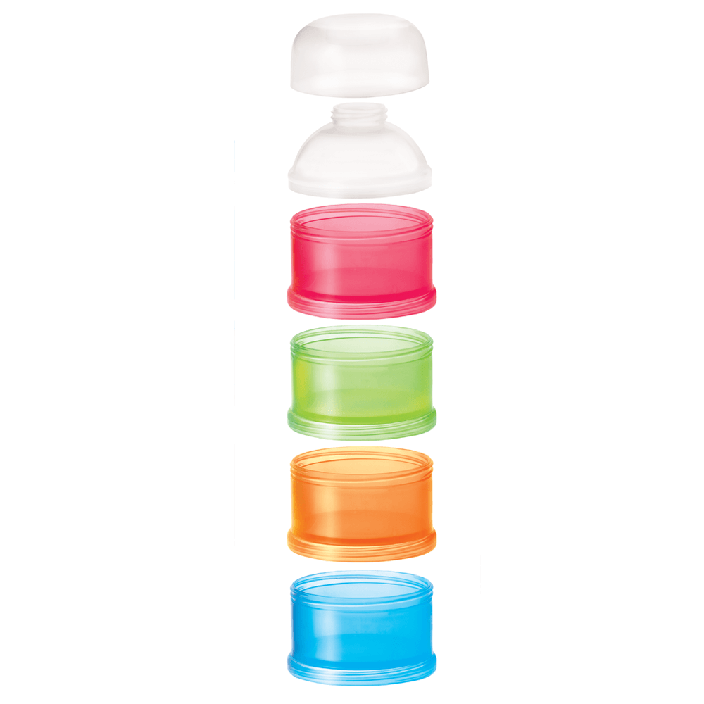 Our dispenser with 4 modules helps you transport your baby’s formula and prepare when you need it. The dispenser has a very practical funnel cap that allows the formula to be poured into any type of bottle. As the modules are self-contained, they also allow you to carry cookies, cereals and fruits, with no risk of mixing. Ideal for use both at home and for walking or short trips.