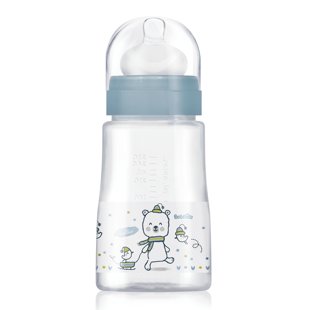 The wide neck of the bottle makes easier to clean. In addition, the bottle cap acts as a stop for the teat and prevents spills.