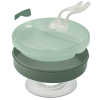 Thermal plate with suction cup base and cutlery