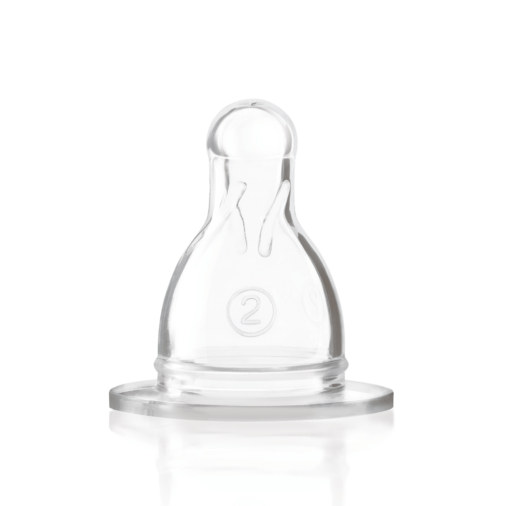 Nuestras tetinas de boca estándar están disponibles en tamaños 1, 2 y 3. Cada tamaño posee un orificio de succión, de diámetro acorde al flujo de alimento; “Tamaño 1”: flujo lento, “Tamaño 2”: flujo medio y “Tamaño 3”: flujo rápido. Así, nuestras tetinas contemplan a través de sus diferentes tamaños el crecimiento físico del bebé, y además acompañan con los diferentes tamaños de orificio de succión la creciente necesidad de flujo de alimento que el necesita.
