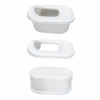 REDUCTOR DE INODORO: colocá el reductor sobre el asiento del inodoro, con el tope antiderrame hacia delante; sujetá el reductor con el asiento y levantalos juntos, tirá de las trabas hacia afuera para desbloquearlas y que giren libremente; girá ambas trabas hacia arriba hasta hacer tope con el borde interno del asiento del inodoro; luego empujá las trabas hacia adentro para bloquearlas. Para retirar el reductor, levantá del asiento del inodoro sin cambiar de posición las trabas.
