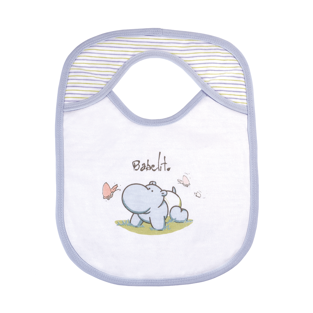 Babero reversible, se puede usar de ambos lados. Hecho en tela suave y absorbente, con interior impermeable para evitar que se ensucie la ropa del bebé. Muy fácil de colocar.