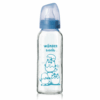 Materiales: Botella: Vidrio / Tapa, rosca y capuchón: PP / Tetina: Silicona.