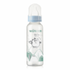 Biberón recto de boca estándar con tetina de silicona tamaño 1. Capacidad 250ml.