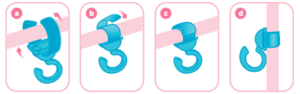 Gancho: Gancho universal para cochecito de paseo. Rota 360 grados. Apto para diversos cochecitos. Soporta un peso de 2 kg.